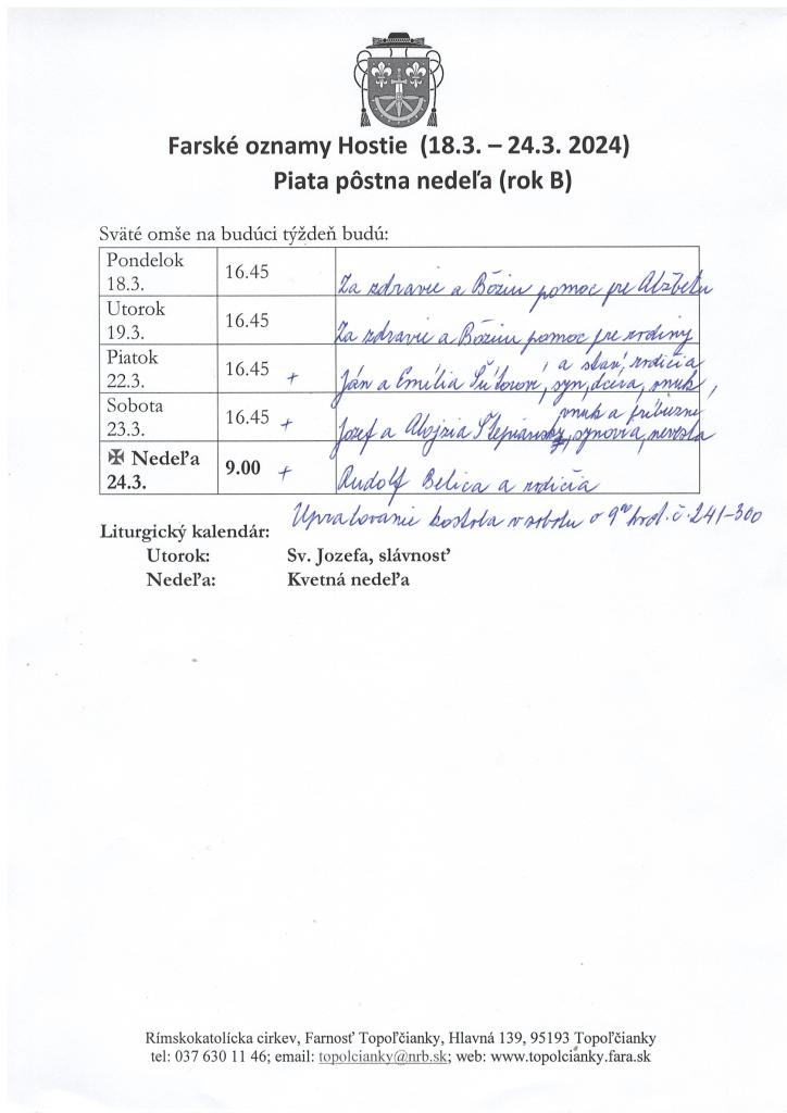 Farské oznamy.
