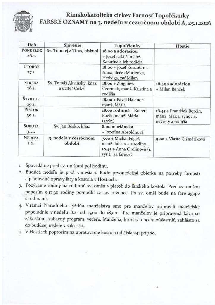 Farské oznamy 26.1.2026 - 1.2.2026